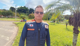 Também há atenção especial para regiões com risco de movimentos de massa, que podem ocorrer principalmente em encostas ou áreas próximas a cursos d’água. Entre esses pontos estão bairros como Bom Jesus, Santa Maria, Novo Horizonte e Tiradentes, onde há construções próximas ao Córrego da Galinha.Subtentente José Márcio Aparecido Nogueira da Defesa Civil. Foto: Caio César