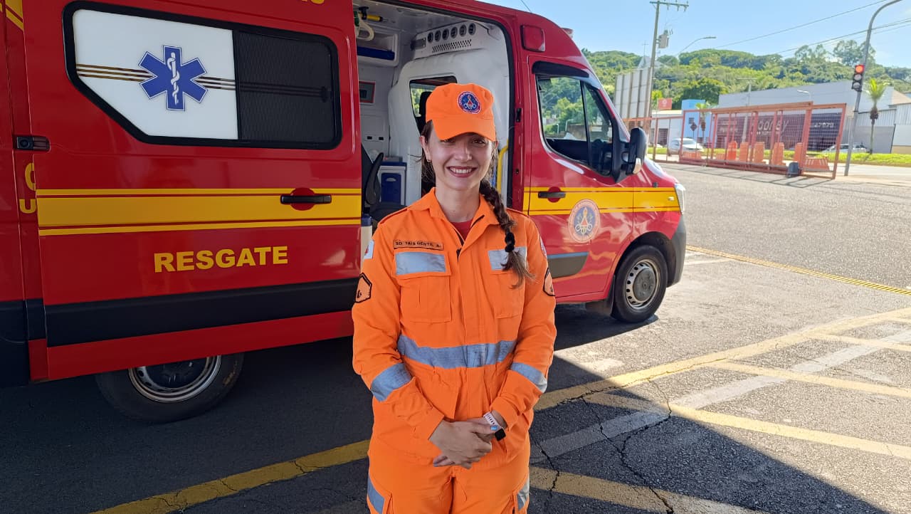 Ela também destacou que a necessidade de reforço é sentida em diversas unidades do estado, inclusive em Araxá. Segundo Taís Gentil, a saída de profissionais ao longo dos anos tem criado uma demanda constante por novos integrantes. “Toda hora tem gente aposentando, gente saindo, então a gente precisa desse reforço, principalmente aqui em Araxá”, explicou.Soldado Taís Gentil do Corpo de Bombeiros de Araxá. Foto: Caio César